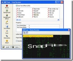 SWFText é uma ferramenta para criação de animações de texto em Flash. Ele abrange mais de 160 efeitos de texto, mais de 30 planos de fundo e várias propriedades personalizáveis como fontes, cor do texto e layout.